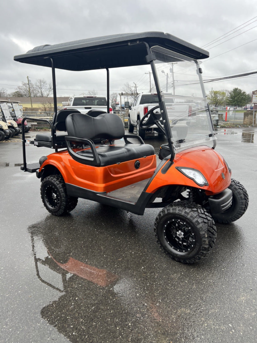 2016 Used Yamaha Drive 48 volt electric custom 3″ Lifted Sunset Candy Orange Metallic golf cart including :