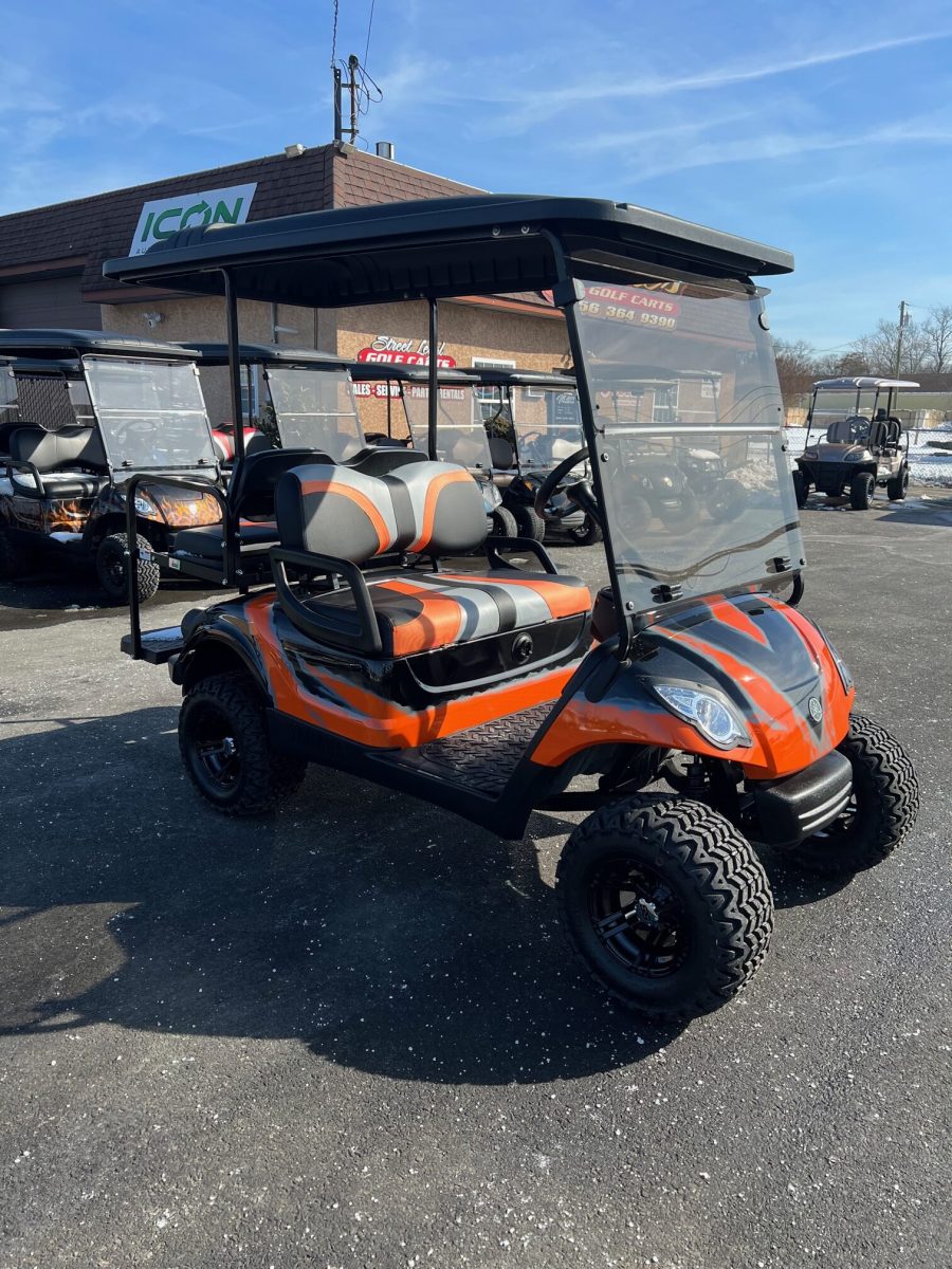 2016 used yamaha drive 48 volt electric 3″ lifted Unique Orange/Black Tear golf cart including :