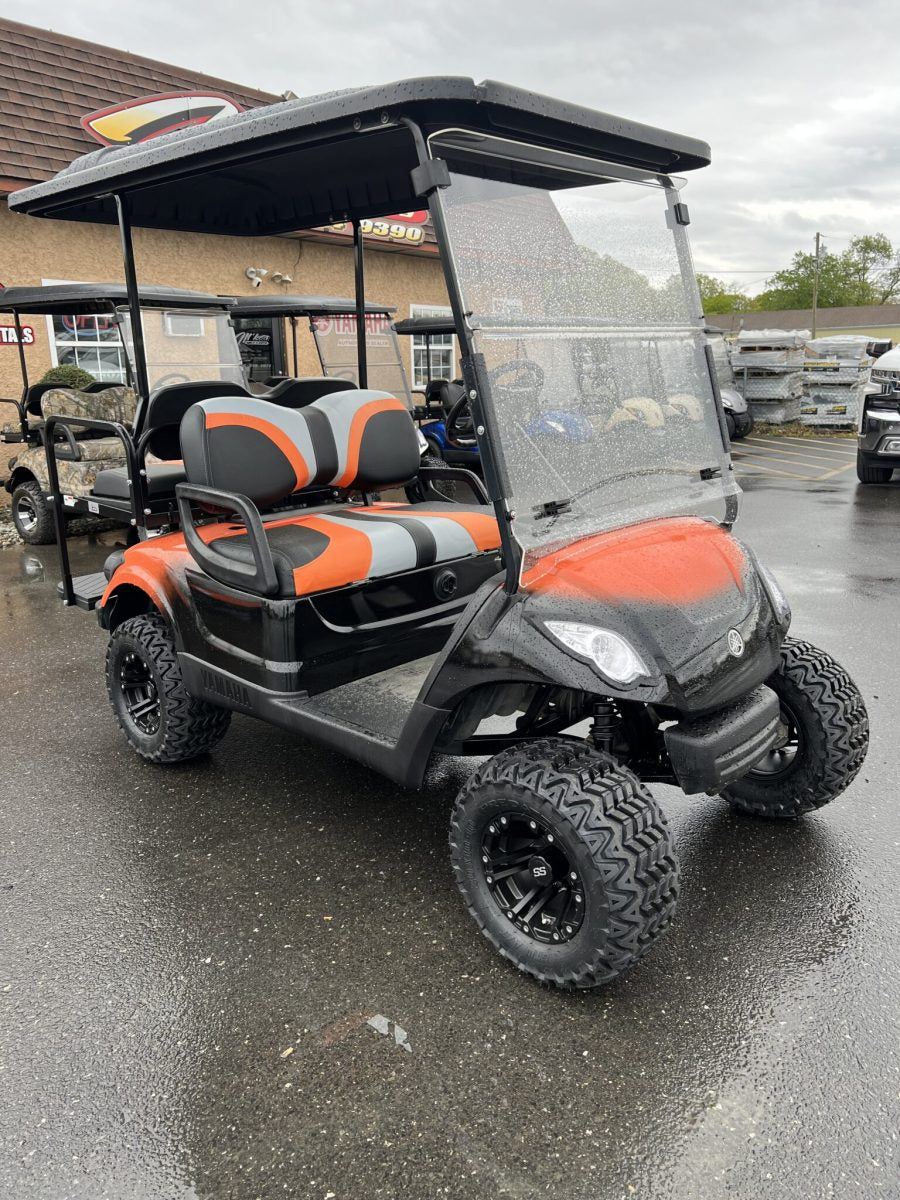 2016 Used Yamaha Drive 48 volt electric custom 3″ Lifted Black/Orange Fade golf cart including :