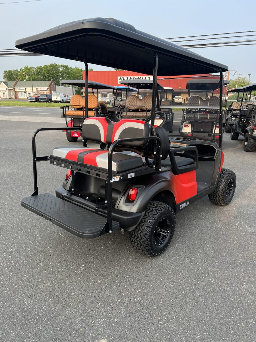 2017 used yamaha drive2 48 volt electric 3″ lifted Matte Red/Black Fade golf cart including :